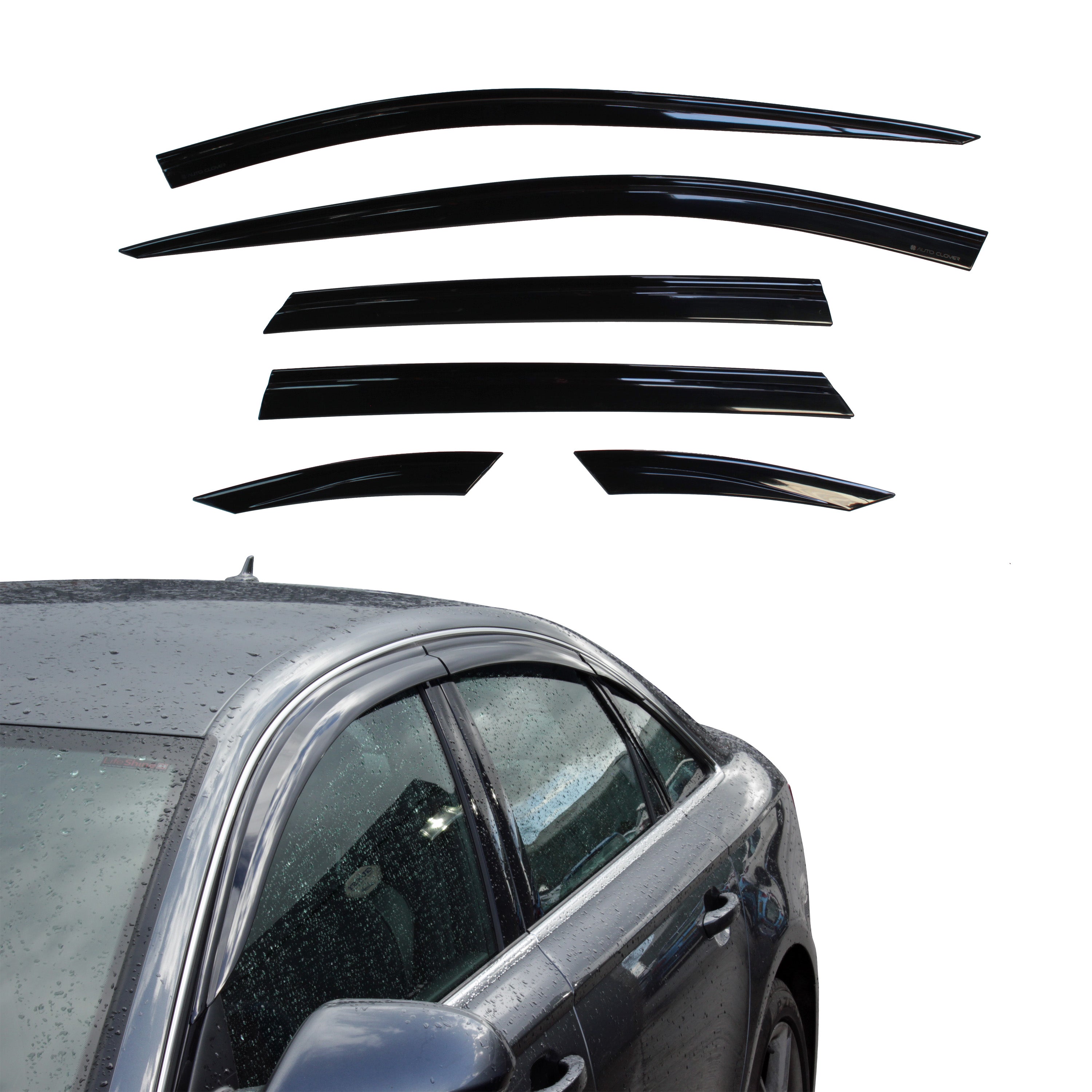 Made by Auto Clover from high quality black tinted SAN plastic, this 6-piece Wind Deflector set for the Audi A6...